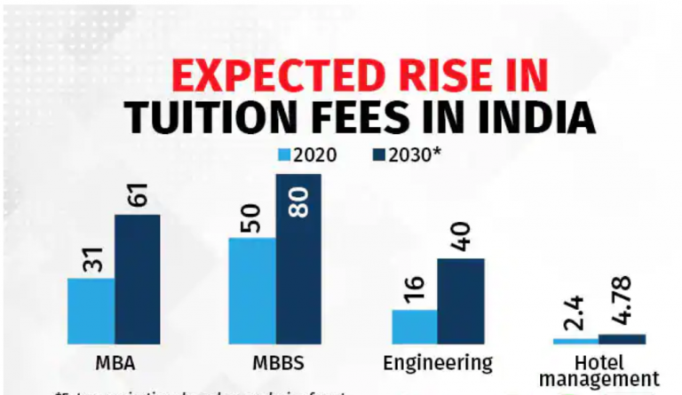 Case study: Based on India's education inflation, if you project the cost of education for the next 5, 10, and 15 years we get some astronomical figures that will make you burn the midnight oil and work harder to achieve your goal.